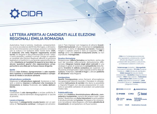 CIDA EMILIA ROMAGNA: LETTERA APERTA AI CANDIDATI ALLE REGIONALI
